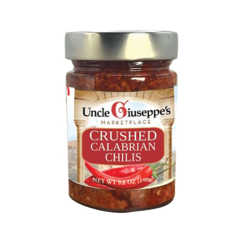 Uncle Giuseppe's Crushed Calabrian Chilis are expertly made from 100% authentic calabrian chilis, known for their spice and robust flavor. Perfect for adding a kick to any dish, these crushed chilis are a must-have for any kitchen. Elevate your cooking with Uncle Giuseppe's.