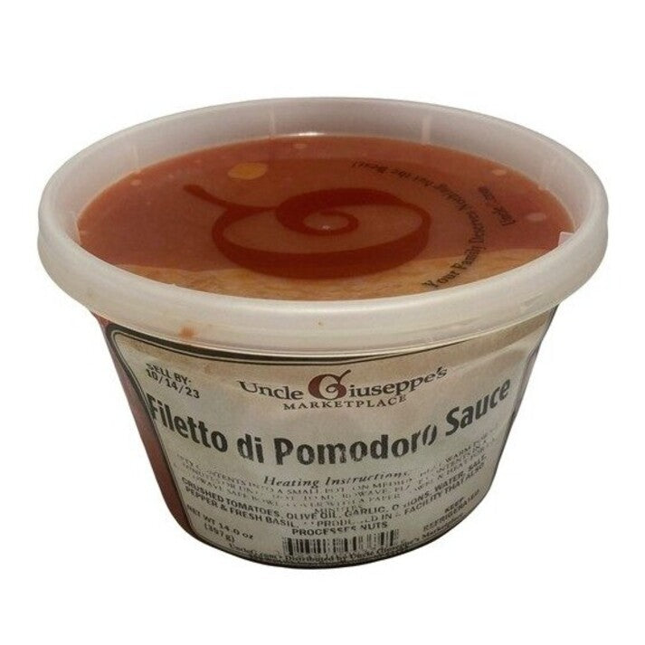 Experience the taste of Italy with Uncle Giuseppe's Fresh Filleltto De Pomidori Sauce. Made with fresh, high-quality ingredients, this sauce will elevate your pasta dishes to the next level. Enjoy the rich flavors of ripe tomatoes and herbs in every bite. Try it now in the large size for even more delicious meals.